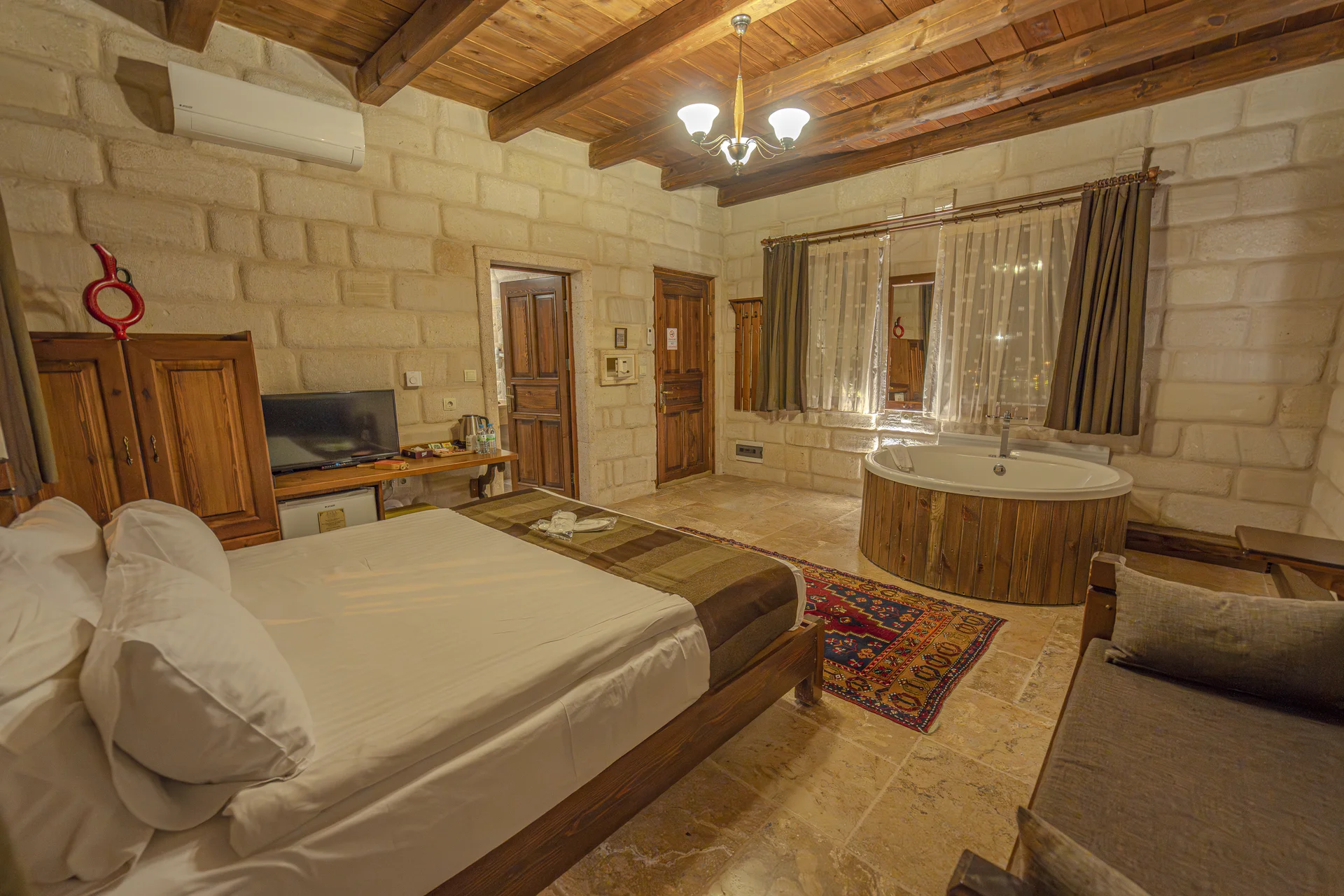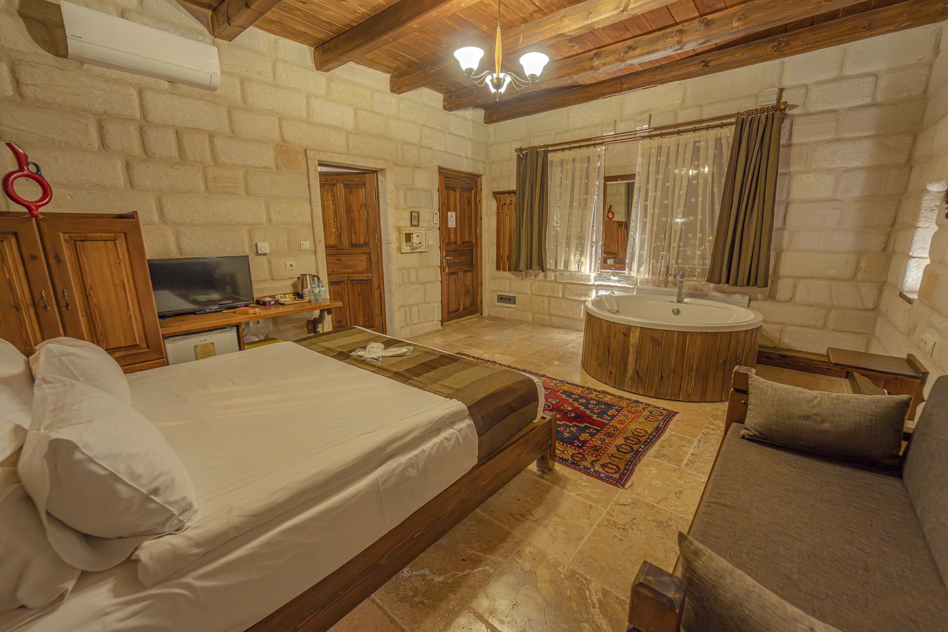 Located in the heart of Cappadocia, Göreme, our superior cave room features a well-designed layout carved into ancient rock formations. This authentic cave accommodation combines traditional Cappadocian architecture with quality comfort amenities, offering guests a pleasant experience.