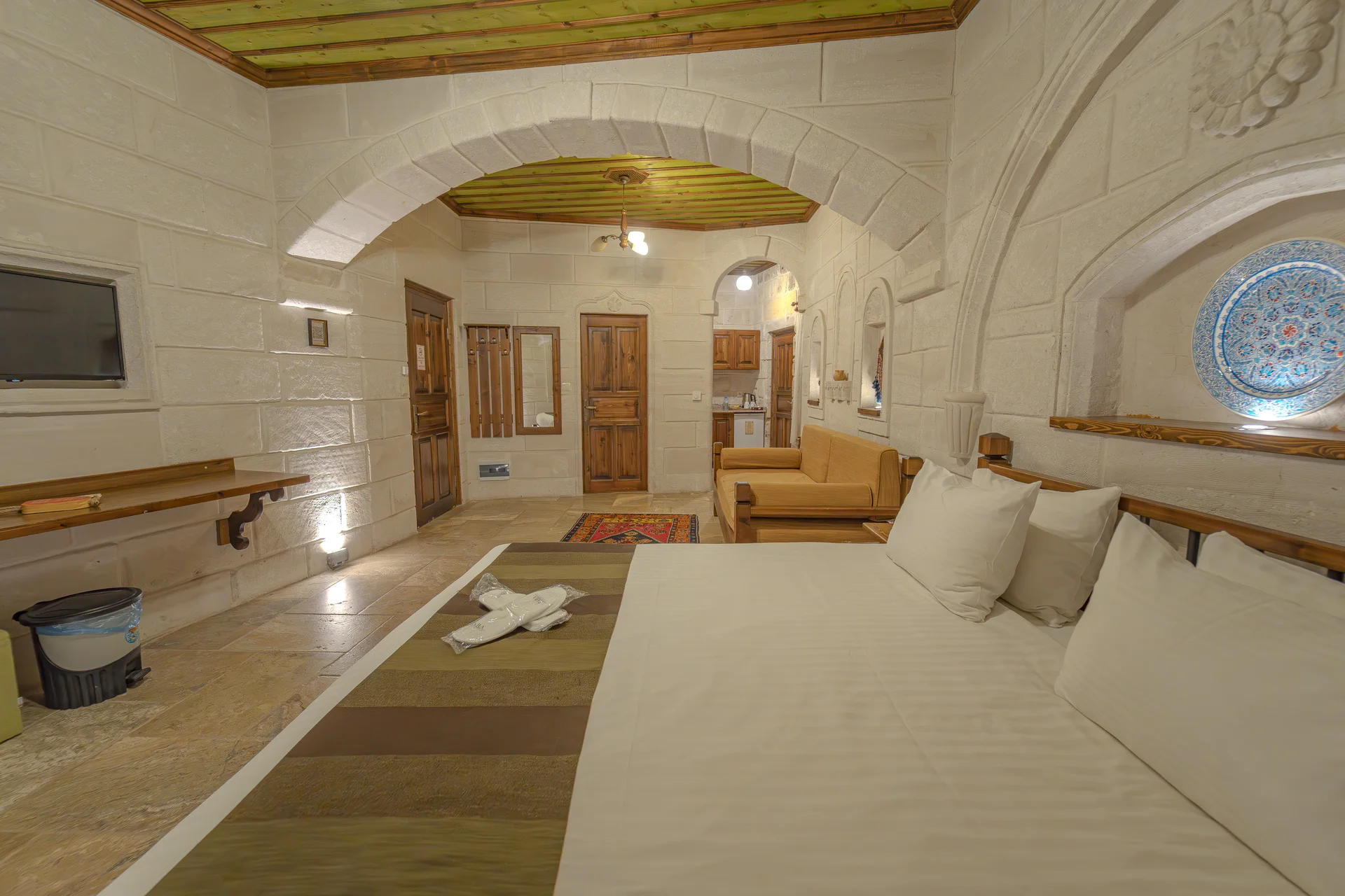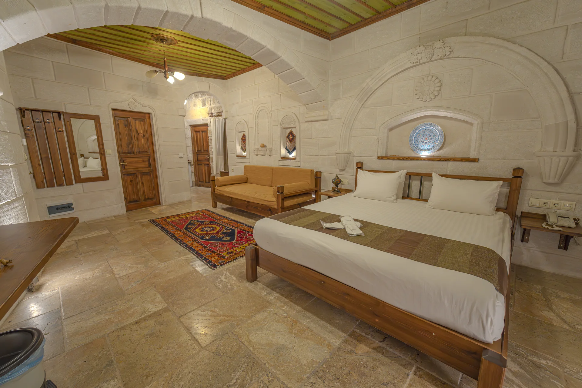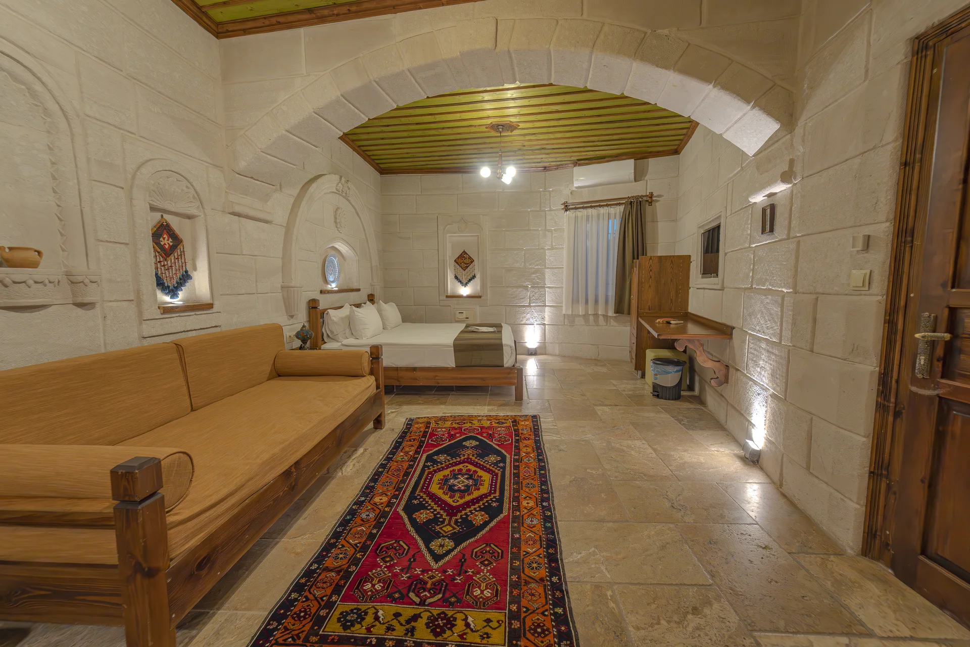 Located in the heart of Cappadocia, Göreme, our superior cave room features a comfortable design carved into natural rock formations. This authentic cave accommodation combines traditional Cappadocian architecture with modern comfort, offering guests a welcoming experience.