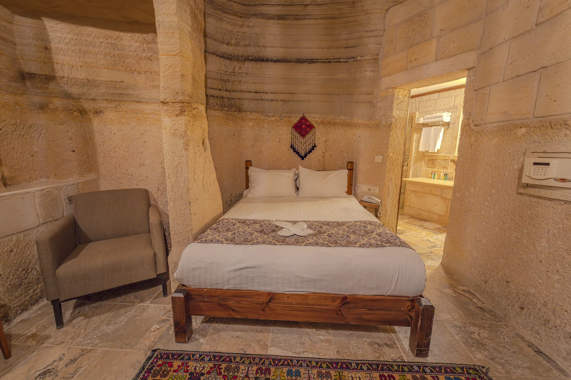 Kapadokya, Göreme'de, masalların konusu olan peri bacalarından biri de otelimizde yer almaktadır. Bu peri bacası odası, doğrudan doğal kaya oluşumuna oyulmuş benzersiz bir deneyim sunarak, yüzyıllardır Kapadokya kültürünün bir parçası olan otantik bir mağara konut deneyimi sağlar.