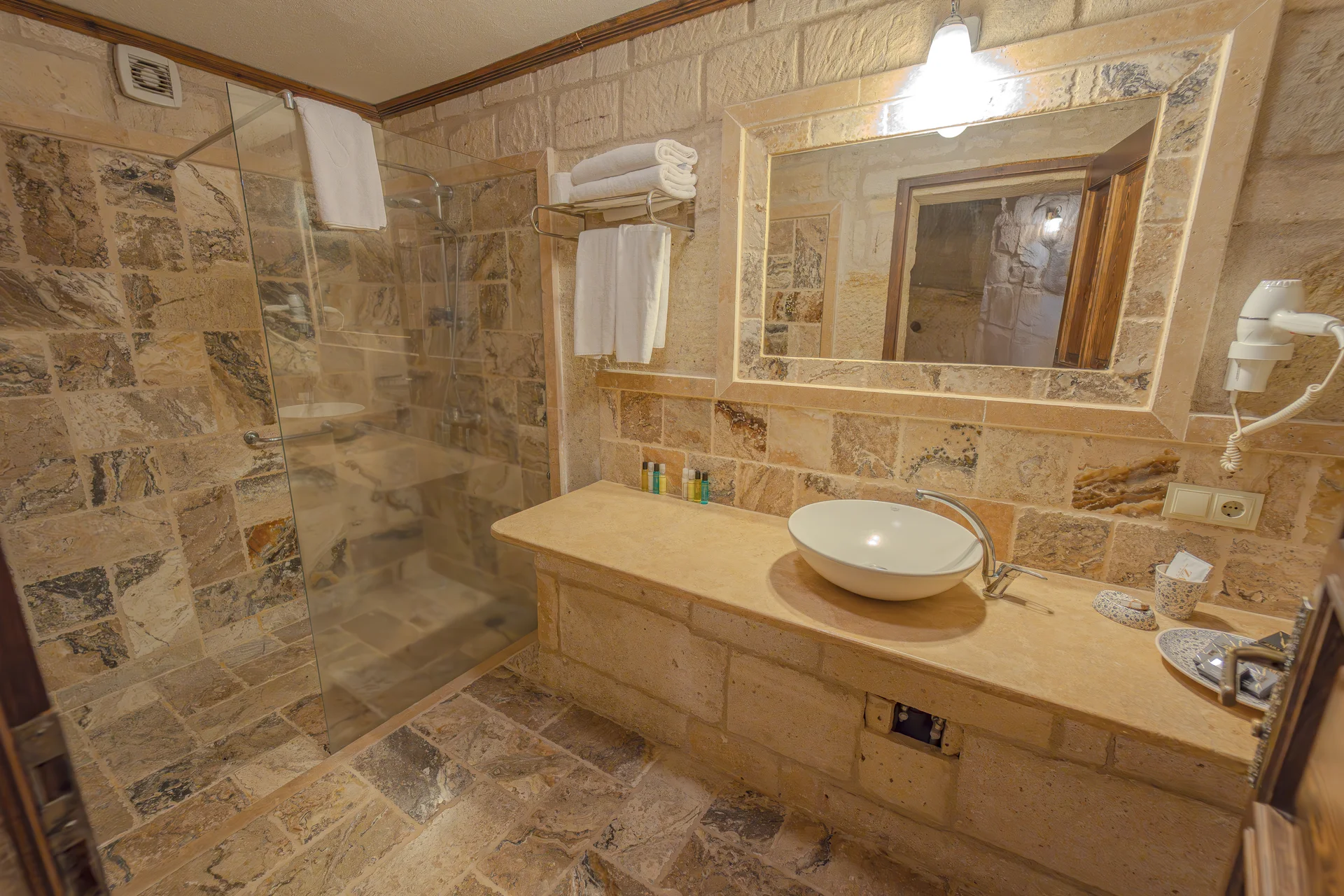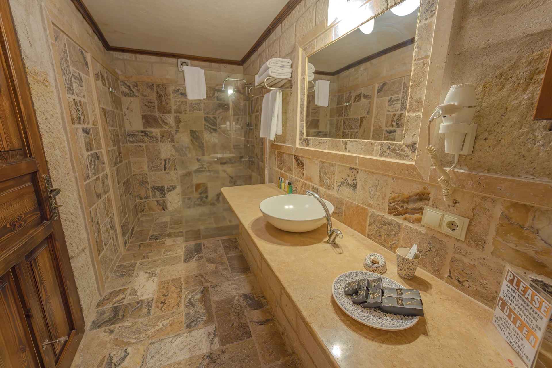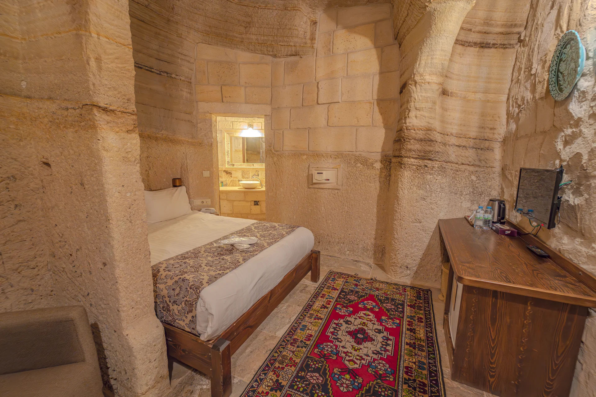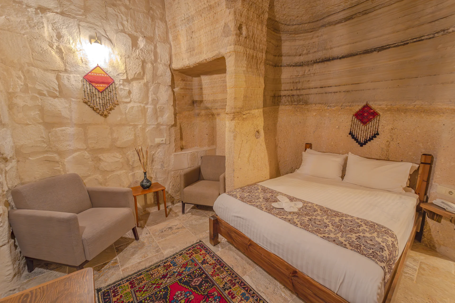 En Capadocia, Göreme, una de las chimeneas de hadas que son tema de cuentos de hadas también se encuentra en nuestro hotel. Esta habitación de chimenea de hadas ofrece una experiencia única tallada directamente en la formación rocosa natural, brindando a los huéspedes una experiencia auténtica de vivienda en cueva que ha sido parte de la cultura de Capadocia durante siglos.