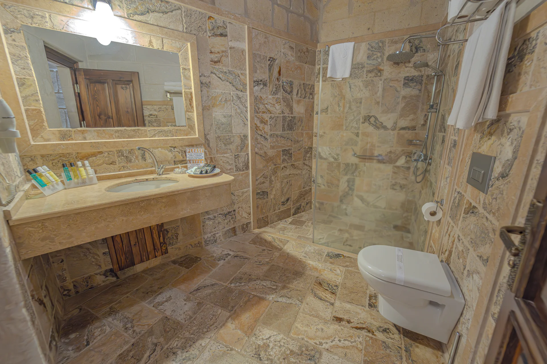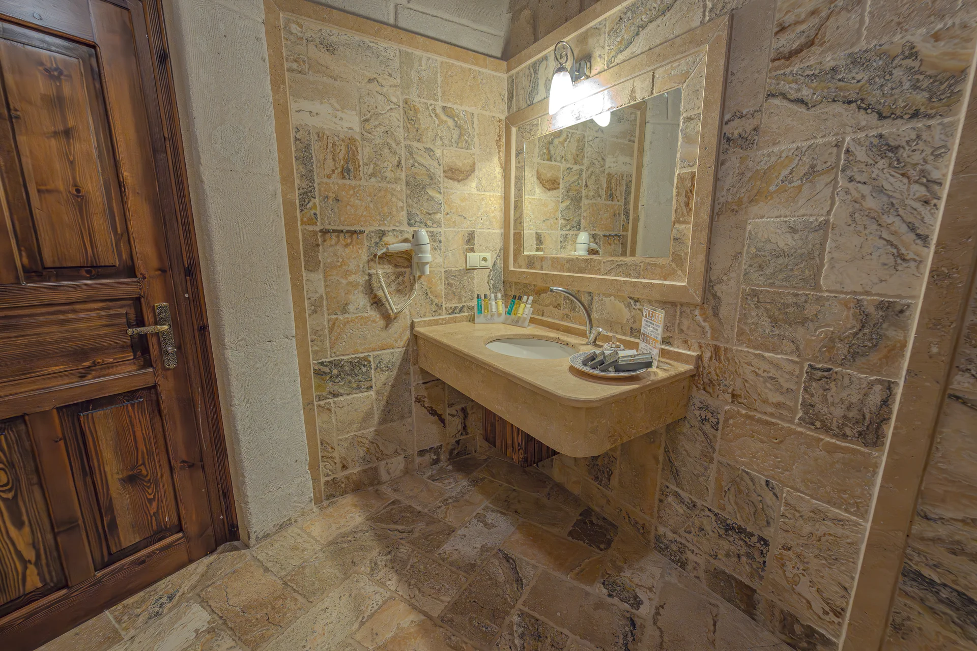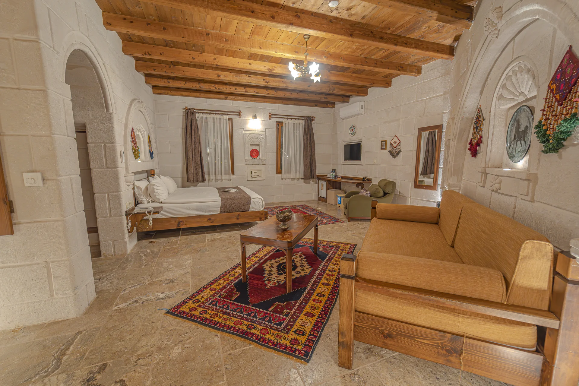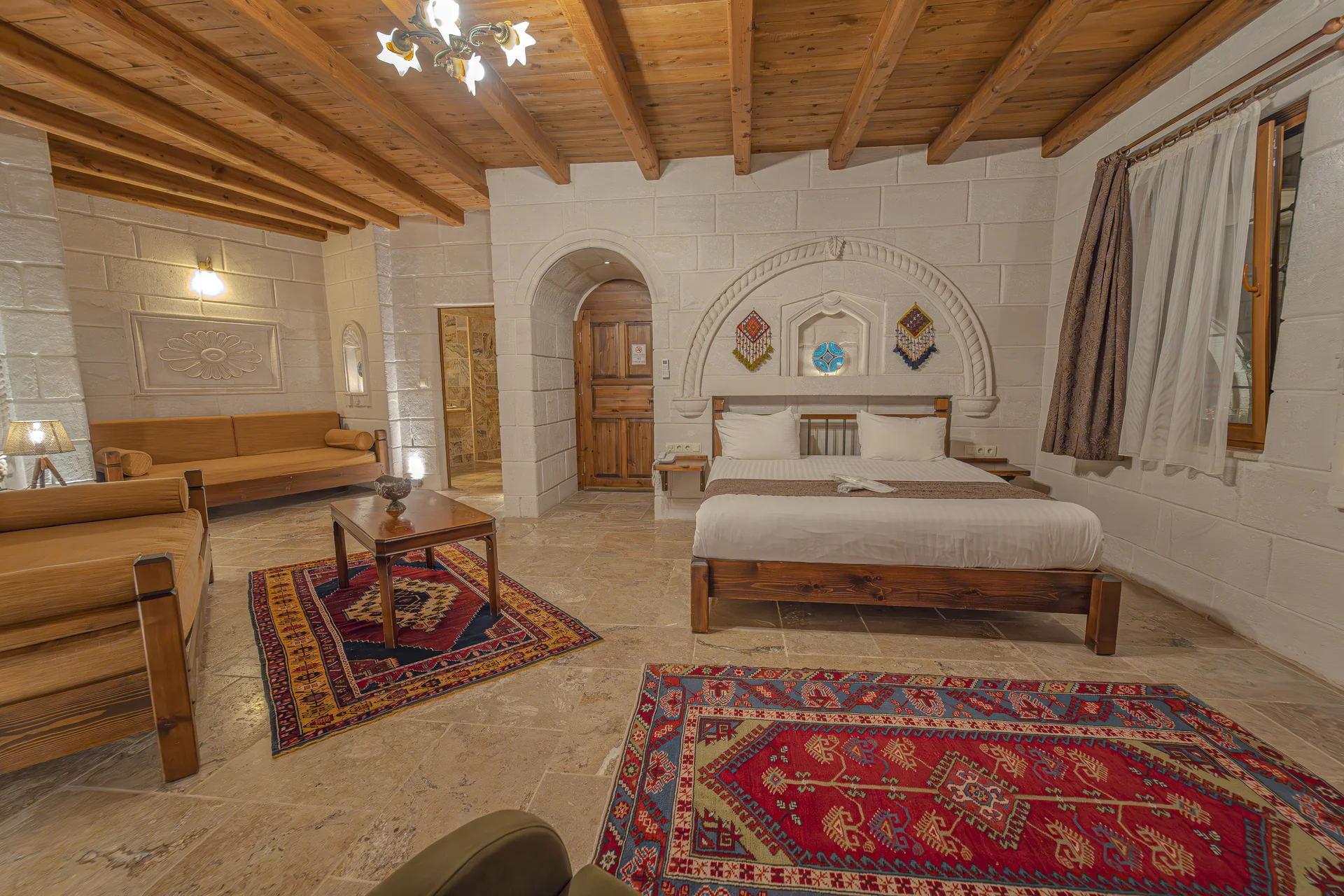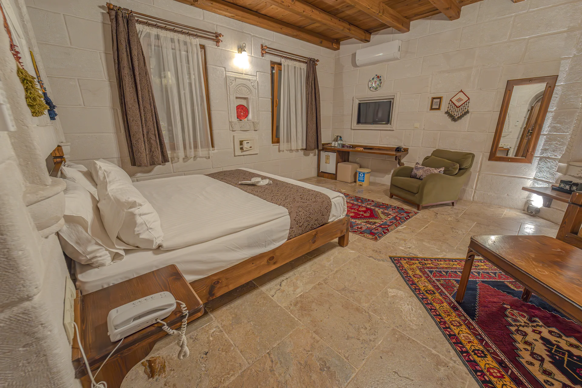 Ubicada en Capadocia, Göreme, esta habitación de piedra king está construida con piedras específicas de la región y destaca por su diseño único y amplitud, con vista a nuestro patio. Este alojamiento excepcional combina la arquitectura tradicional de Capadocia con el confort moderno, ofreciendo a los huéspedes una experiencia auténtica de habitación de piedra.