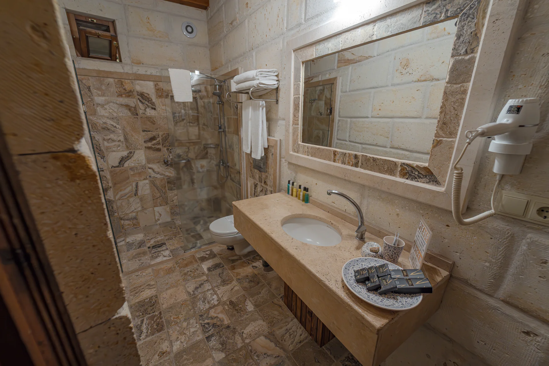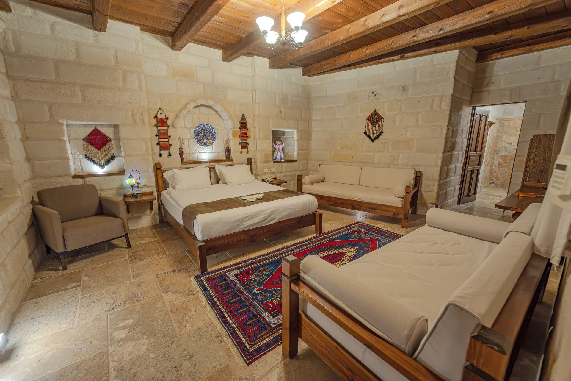 Ubicada en Capadocia, Göreme, esta habitación de piedra con camas gemelas está construida con piedras específicas de la región y destaca por su diseño práctico. Este alojamiento funcional combina la arquitectura tradicional de Capadocia con el confort moderno, ofreciendo a los huéspedes una experiencia cómoda de habitación de piedra.
