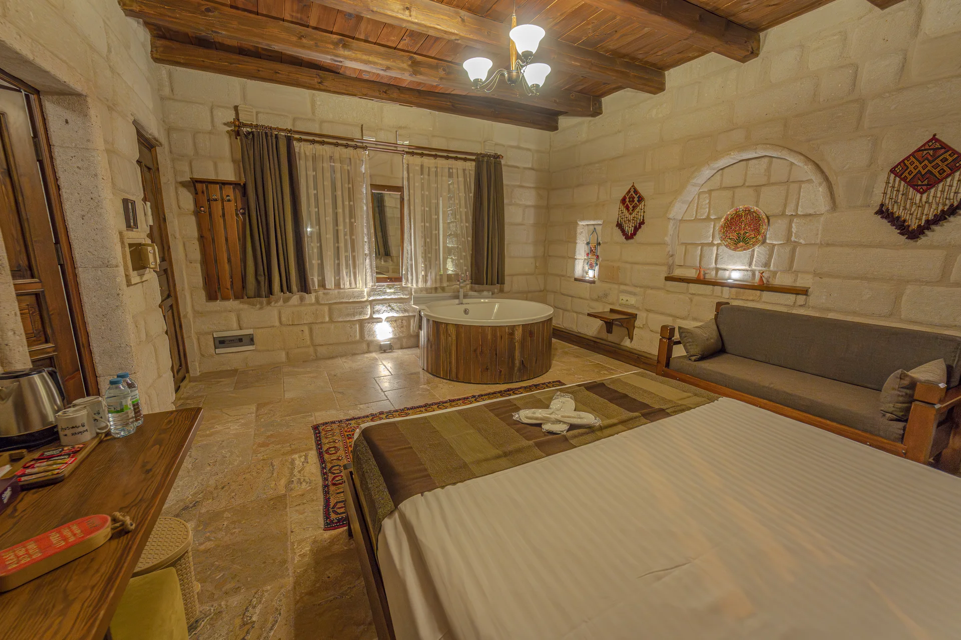 Ubicada en el corazón de Capadocia, Göreme, nuestra habitación cueva superior presenta un diseño bien planificado tallado en antiguas formaciones rocosas. Este auténtico alojamiento en cueva combina la arquitectura tradicional de Capadocia con comodidades de calidad, ofreciendo a los huéspedes una experiencia agradable.